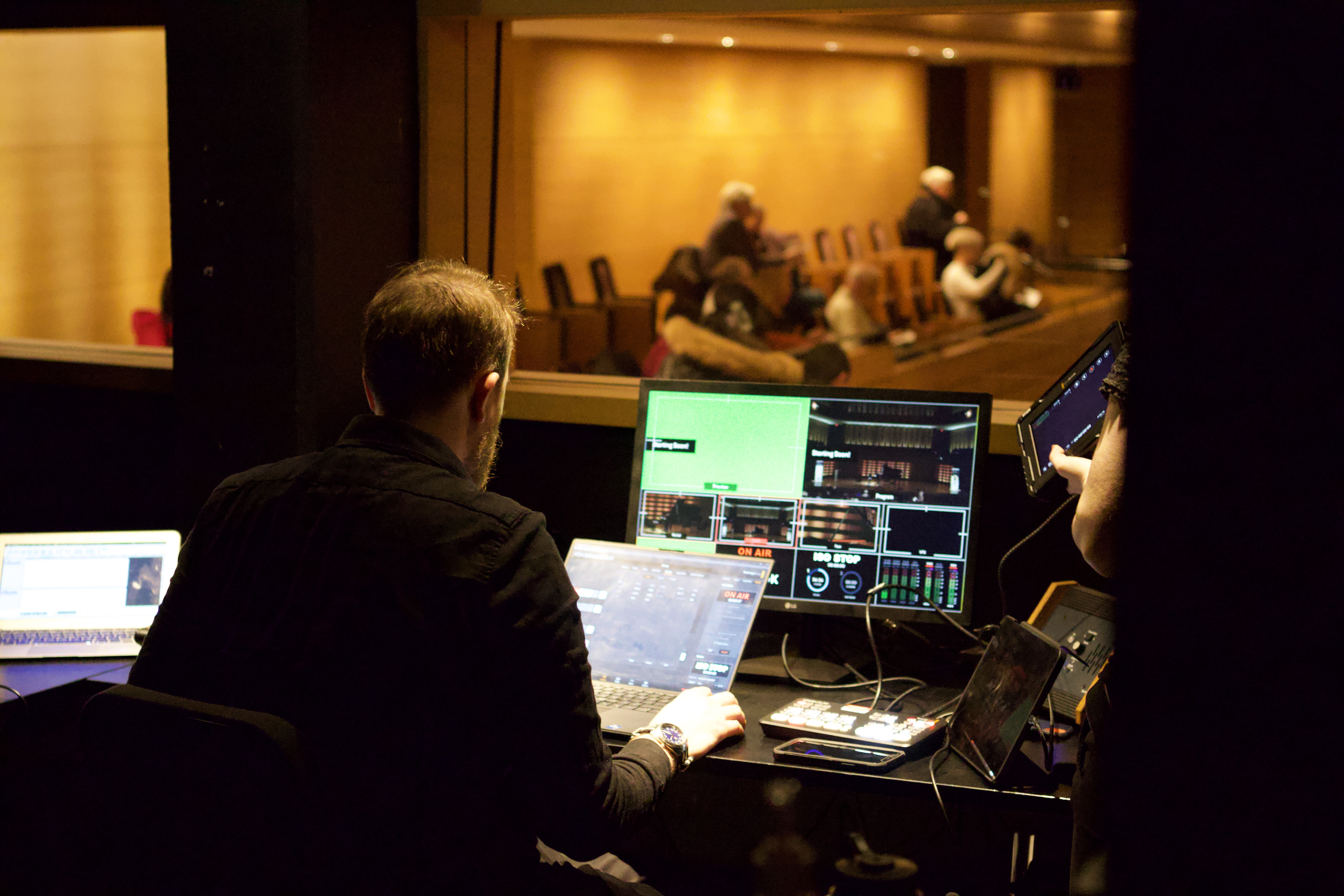 The competition opened in Temerty Theatre with a recital by Krysztof Jablonski and Lingfei (Stephan) Xie. While this event was not live streamed, it was recorded. Immediately following the recital we needed to move into Mazzolenni Hall for the first day of the competition requiring a quick and easy setup and strike.